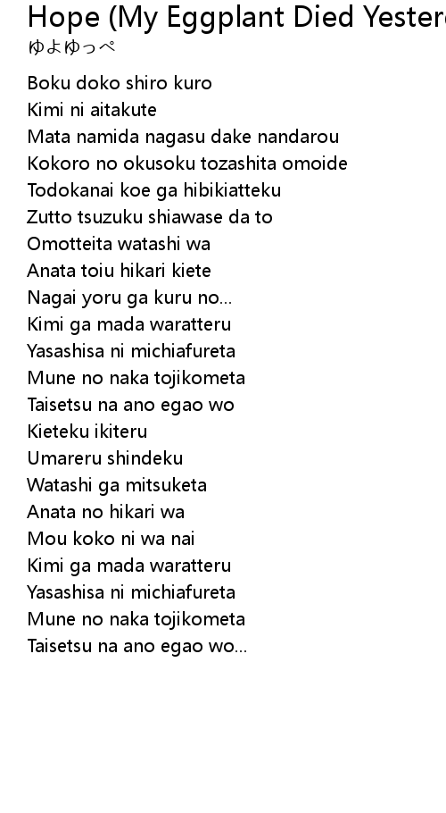 Hope (My Eggplant Died Yesterday ver.) Lyrics