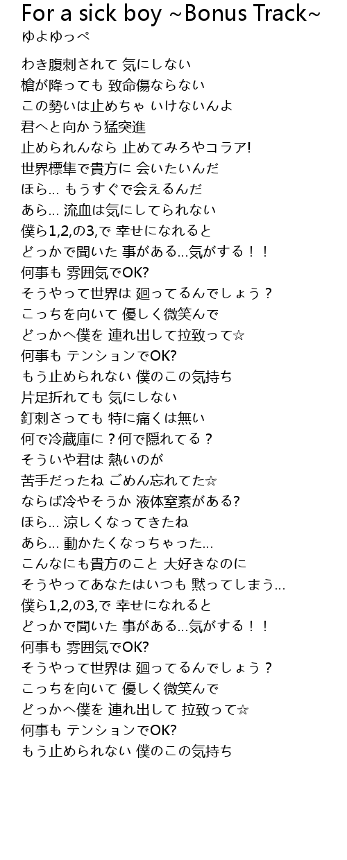 | Song | For a sick boy ~Bonus Track~ |