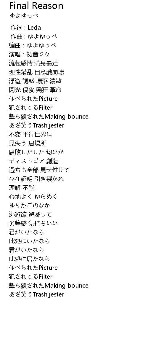 | [00:13.21] | 浮遊 誘惑 壊落 潰散 |