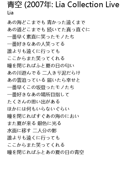 | Song | 青空 (2007年: Lia Collection Live At Zepp Tokyo) |