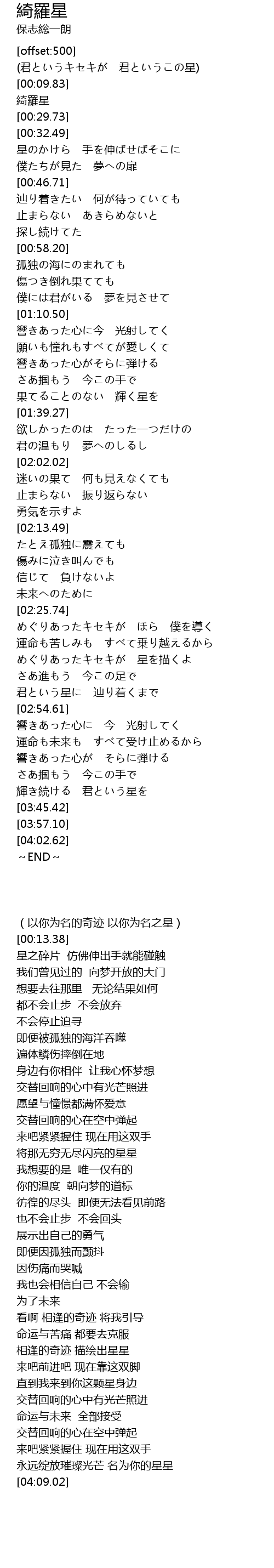 | [00:00.00] | (君というキセキが 君というこの星) |