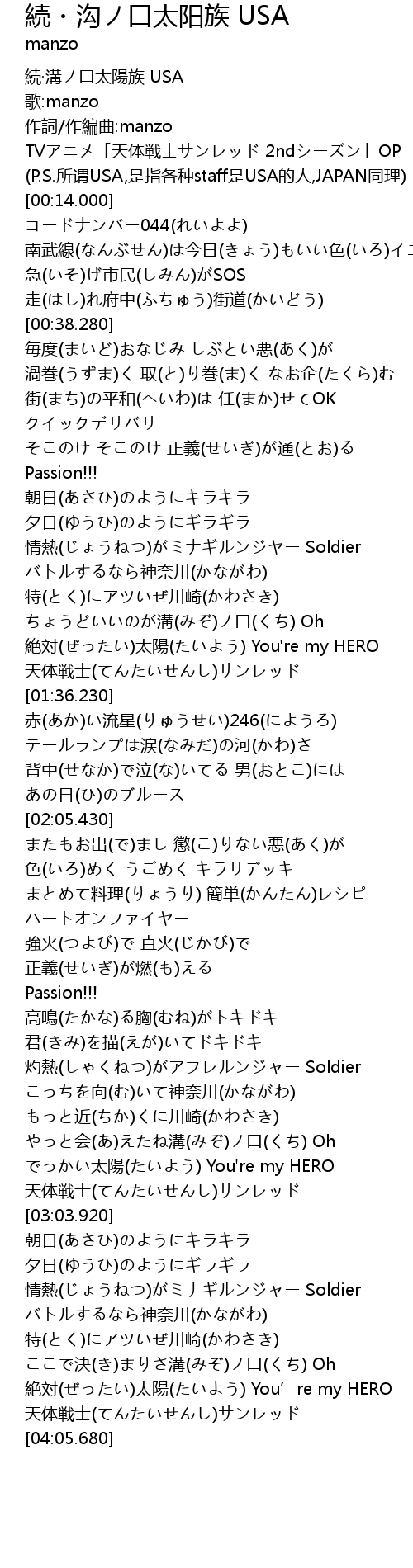 | [00:01.000] | 続·溝ノ口太陽族 USA |