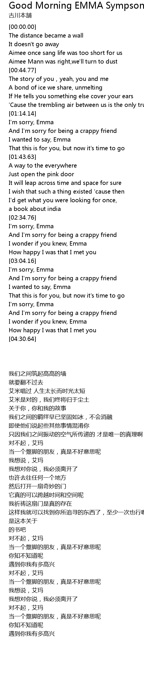 | [02:44.38] | And I'm sorry for being a crappy friend |