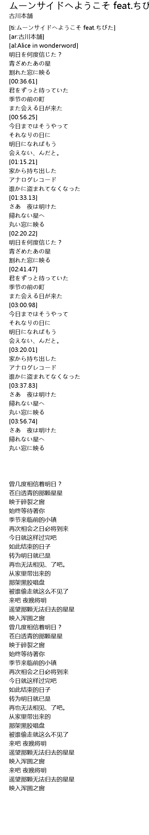 | [ti:ムーンサイドへようこそ feat.ちびた] | |