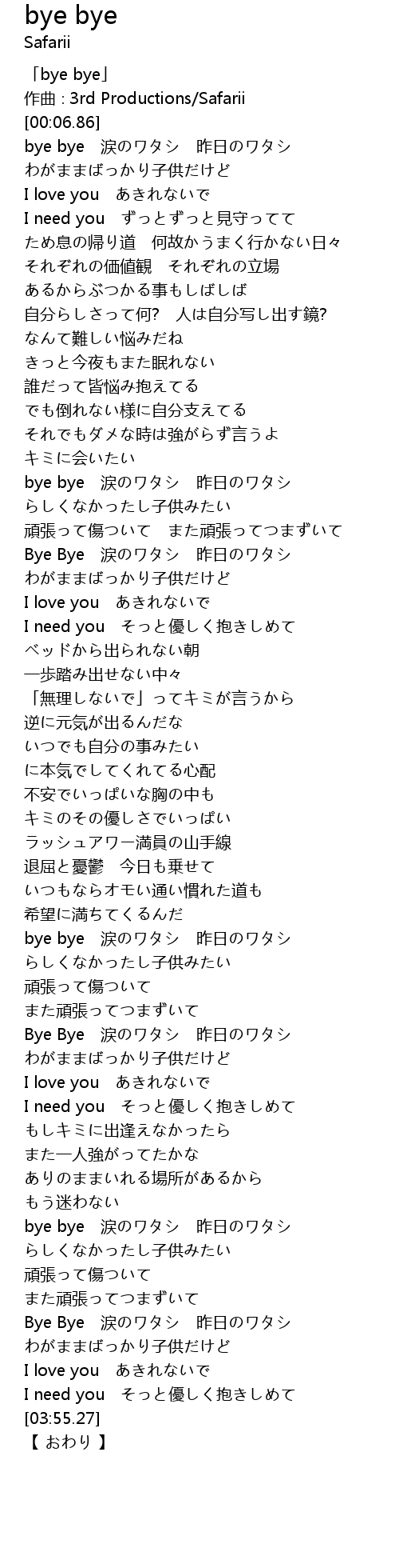 | [03:16.05] | bye bye 涙のワタシ 昨日のワタシ |