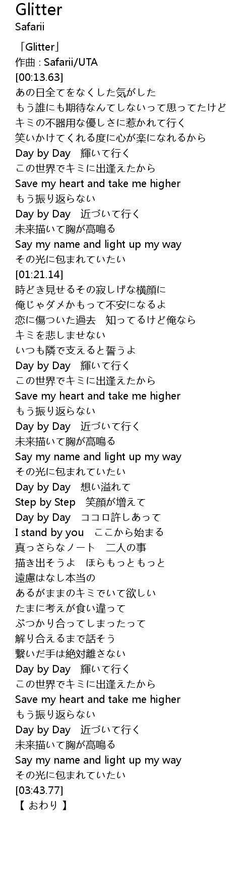 | [02:06.12] | Day by Day 輝いて行く |