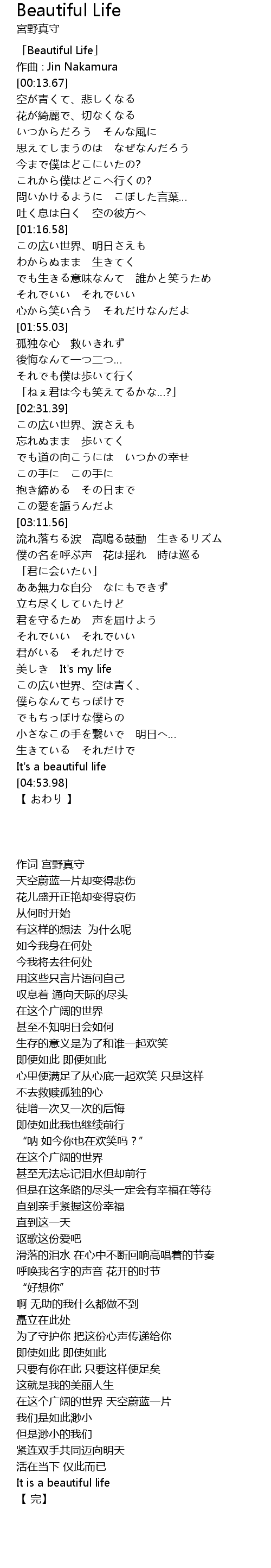 | [00:01.67] | 「Beautiful Life」 |