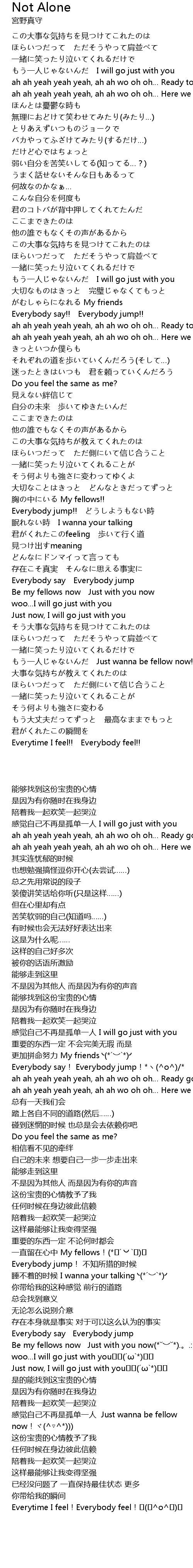 | [04:23.490] | もう一人じゃないんだ Just wanna be fellow now!! |