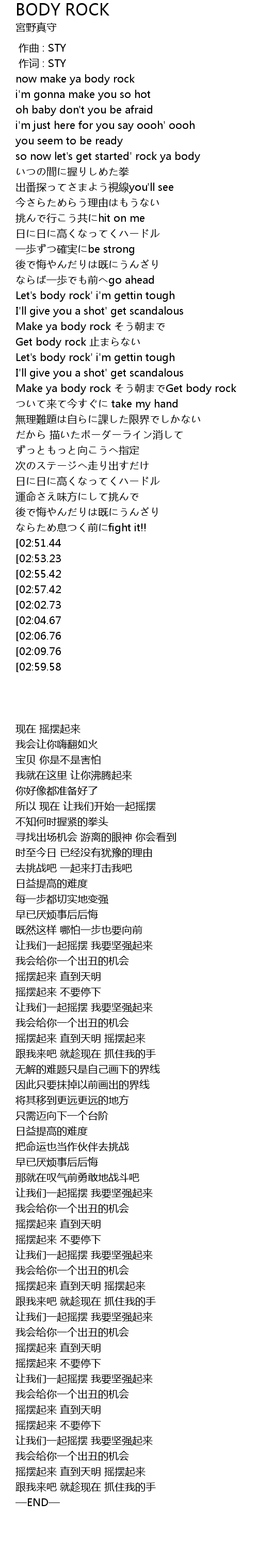 | [03:19.64][02:55.42][01:58.55] | Make ya body rock chao |