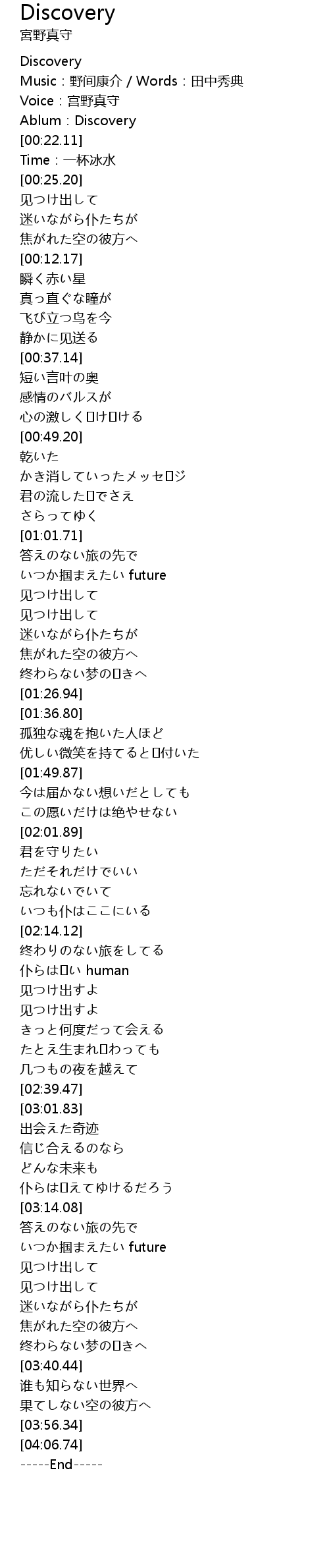 | [00:18.20] | Voice:宫野真守 |