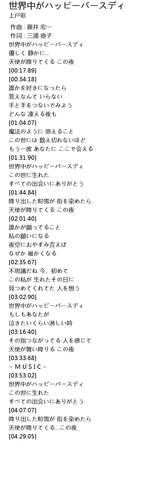 | [03:23.76] | 天使が舞い降りる この夜 |