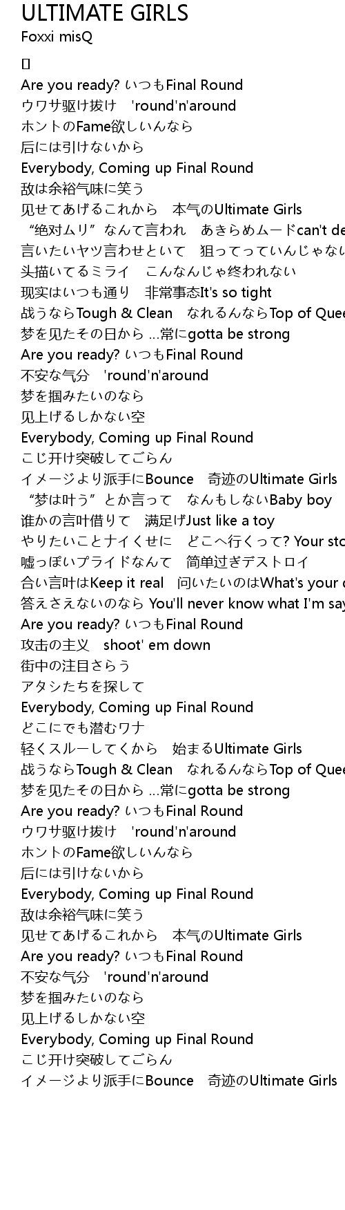 | 轻くスルーしてくから 始まるUltimate Girls | |