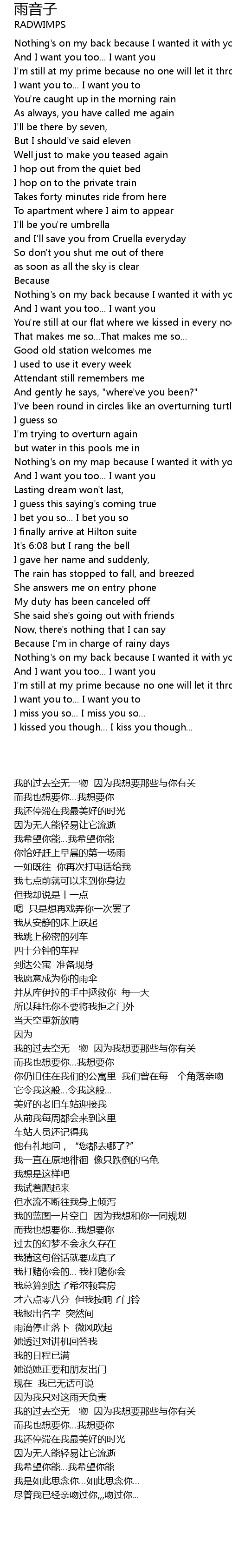 Nothing's on my back because I wanted it with you |