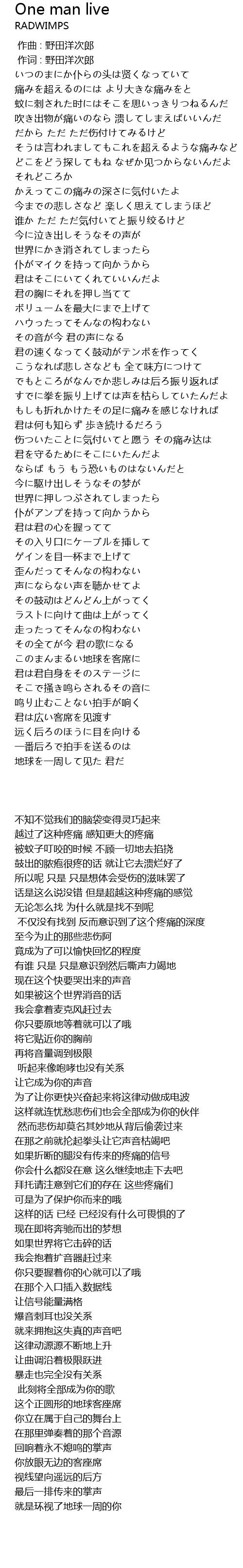 | [00:01.00] | 作词 : 野田洋次郎 |