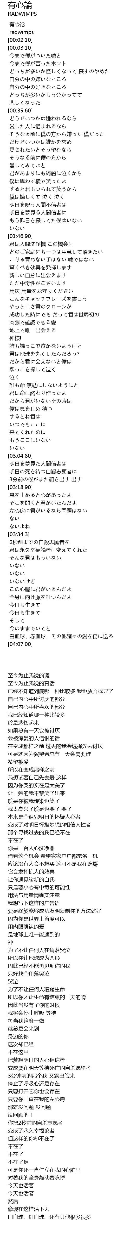 | [04:02.40] | 白血球、赤血球、その他諸々の愛を僕に送る |