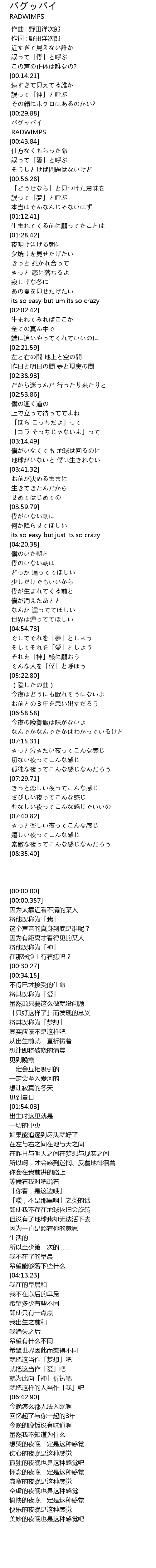| [00:34.15] | RADWIMPS |