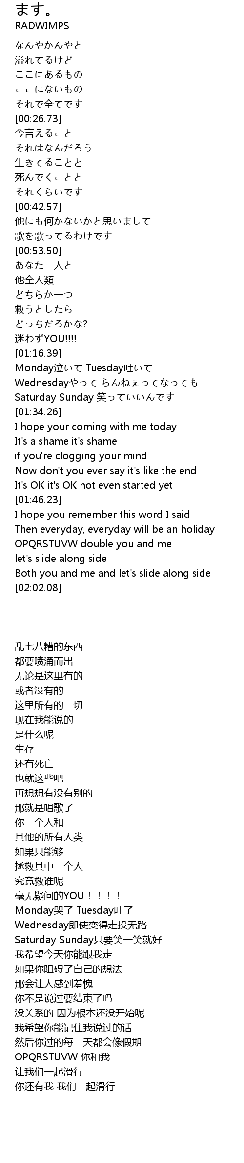 | [01:29.89] | Saturday Sunday 笑っていいんです |