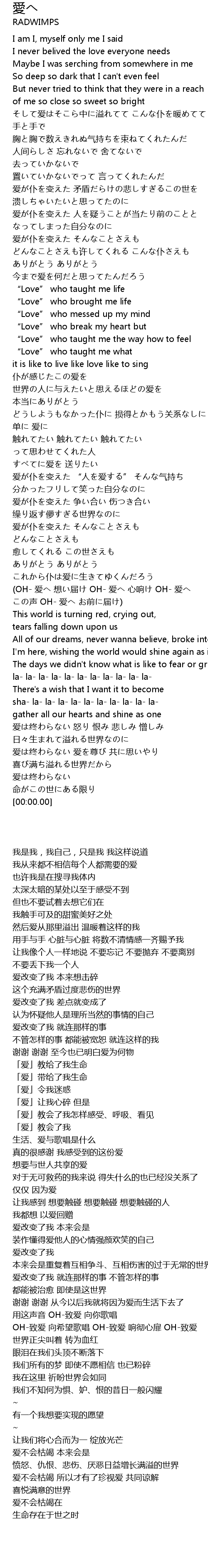 | [02:43.44] | すべてに爱を 送りたい |