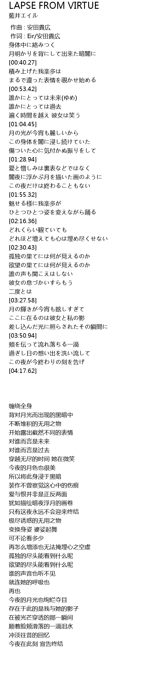 | [00:01.00] | 作词 : Eir/安田貴広 |