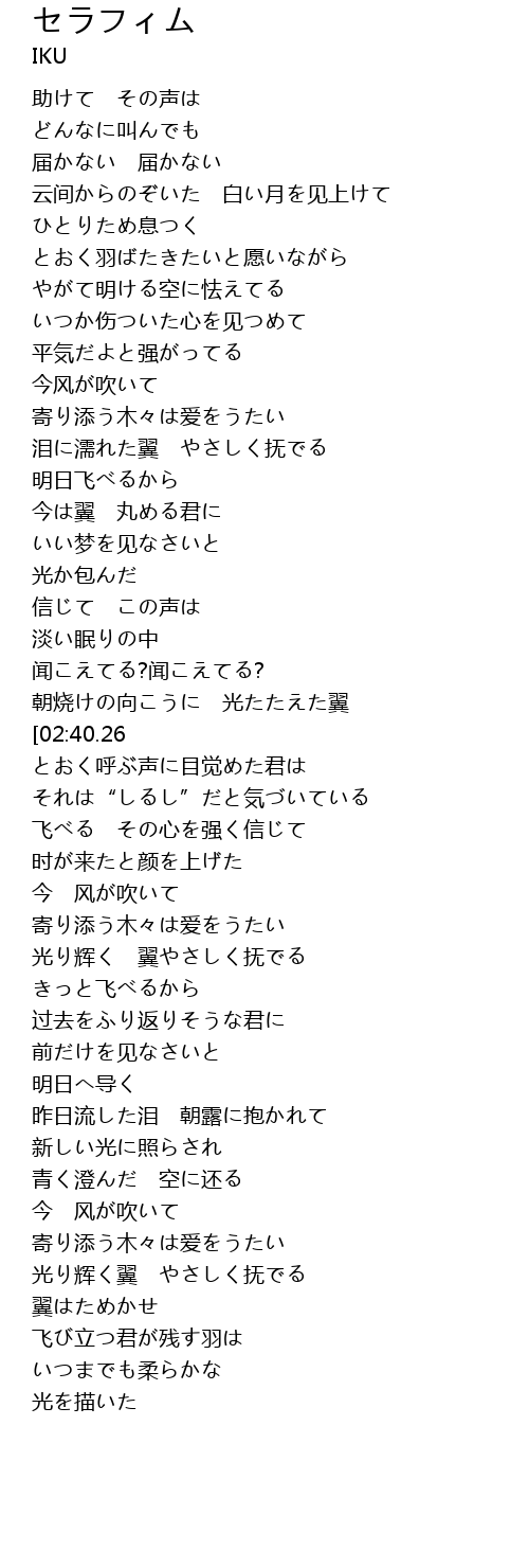 | [03:24.24] | 光り辉く 翼やさしく抚でる |