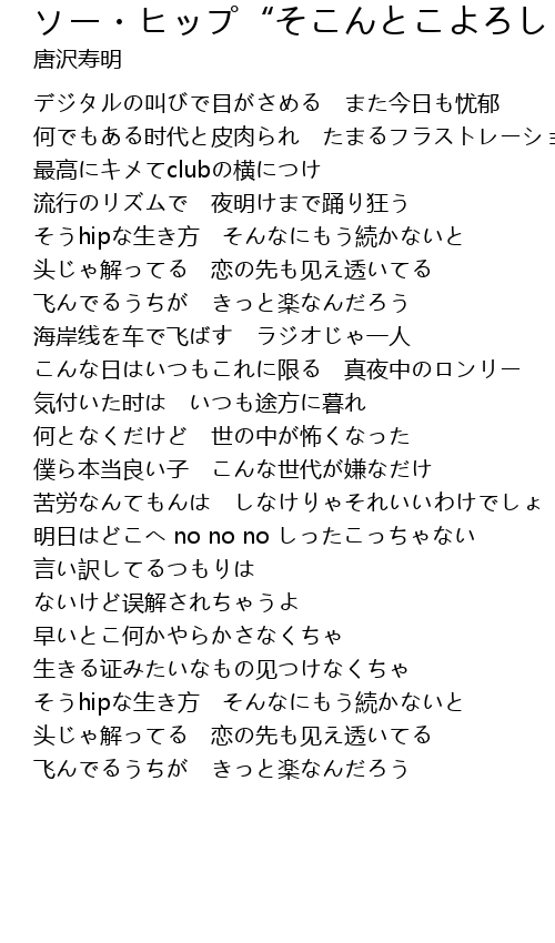 | [00:49.40] | そうhipな生き方 そんなにもう続かないと |