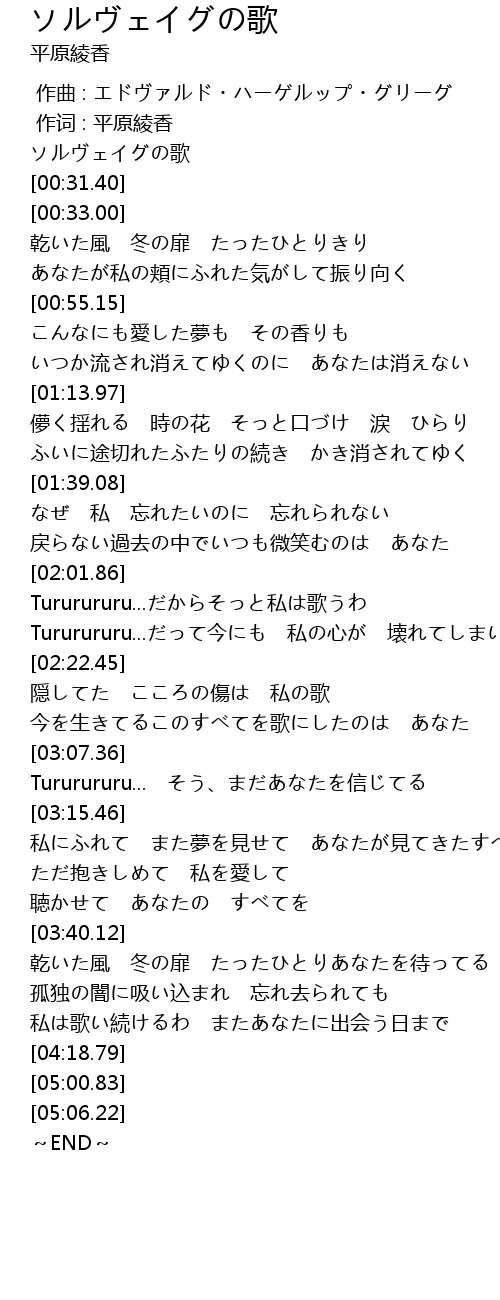 | [00:00.00] | ソルヴェイグの歌 |