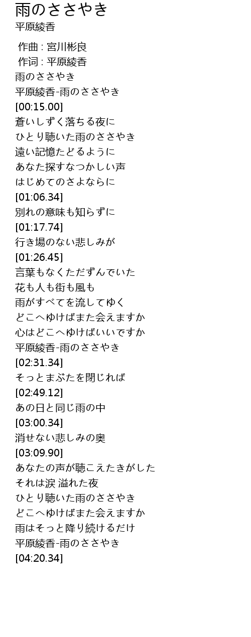 | [04:04.54] | 平原綾香-雨のささやき |