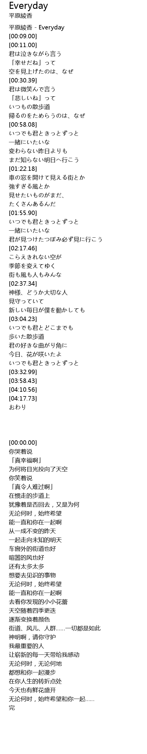 | [00:00.00] | 平原綾香 - Everyday |