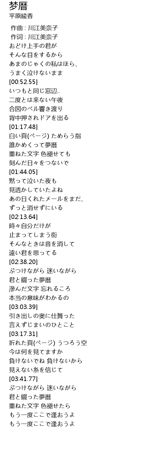 | [01:24.23] | 誰かめくって夢暦 |