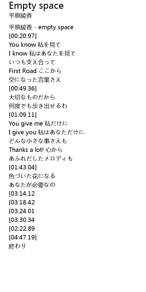 | [00:00.00] | píng yuán líng xiāng empty space |