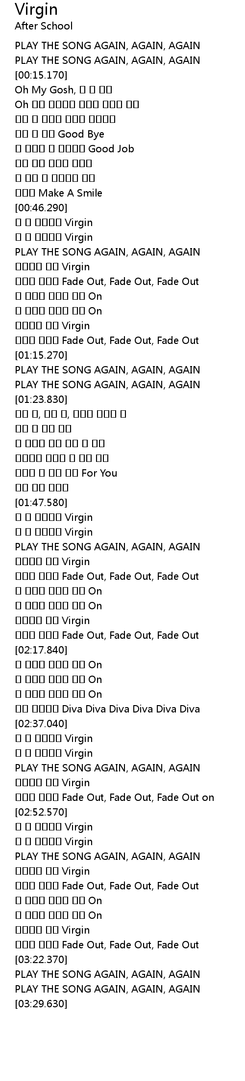 | [00:47.530] | 난 이 순간부터 Virgin |