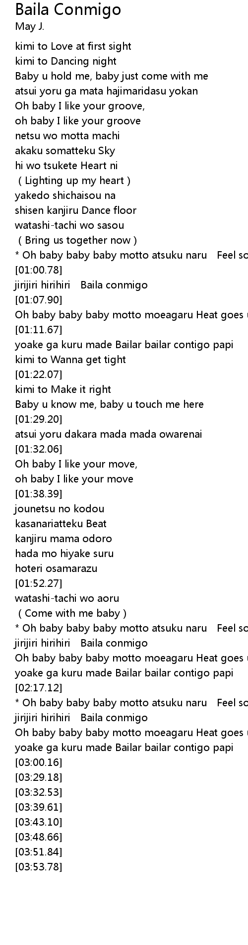 | [02:03.15] | jirijiri hirihiri Baila conmigo |