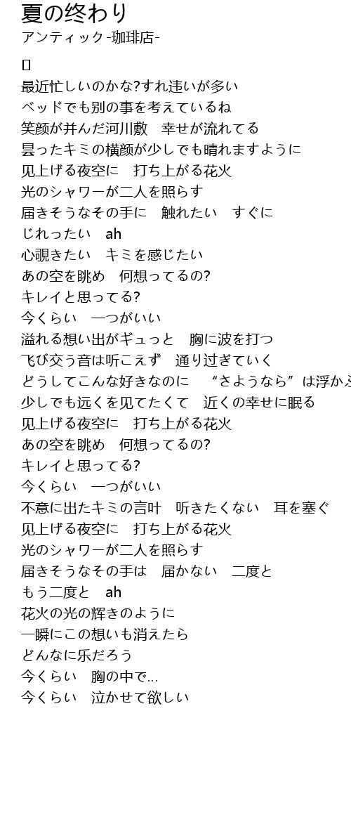 | Song | 夏の终わり |