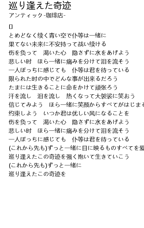 | 巡り逢えたこの奇迹を强く抱いて生きていこう | |