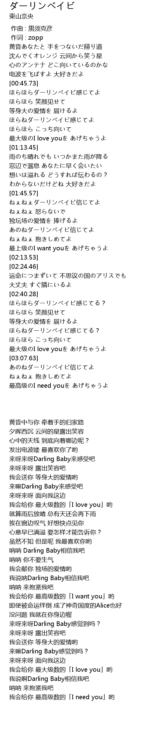 | [03:07.96] | あのねダーリンベイビ信じてよ |