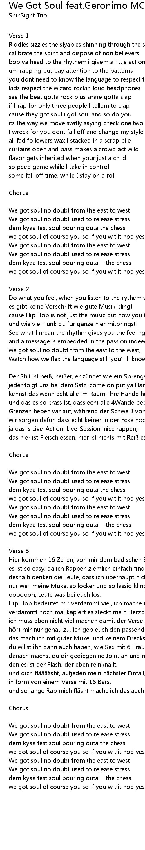| We got soul no doubt from the east to west | |