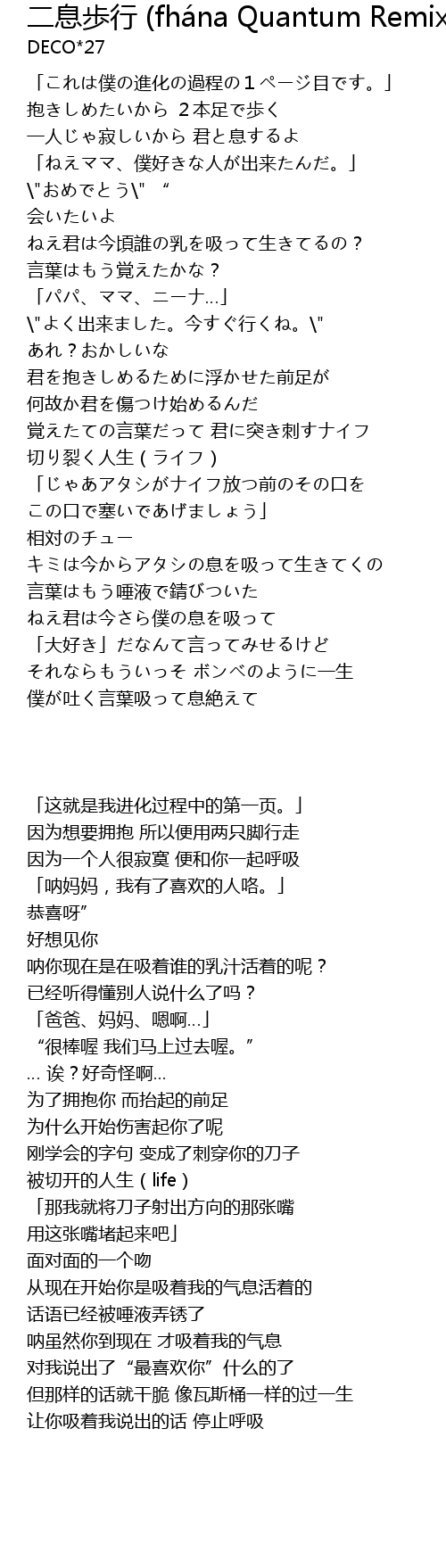 | [00:26.86] | 一人じゃ寂しいから 君と息するよ |