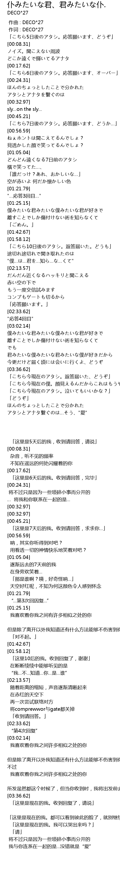 | [03:03.65] | 僕みたいな君みたいな僕みたいな君が好きで |