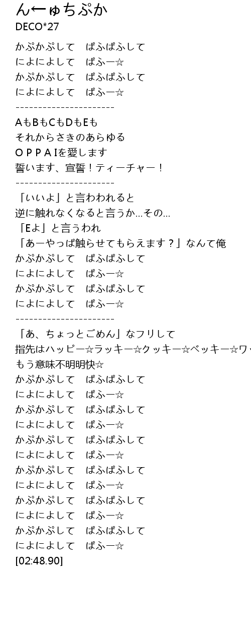 | [02:41.00] | かぷかぷして ぱふぱふして |