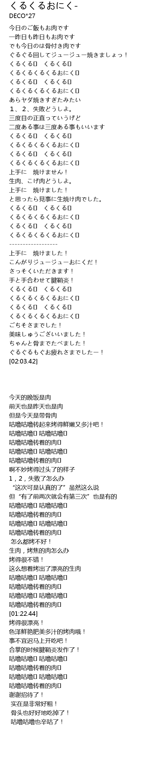 | [01:00.26] | くるくるくるくるおにく♪ |