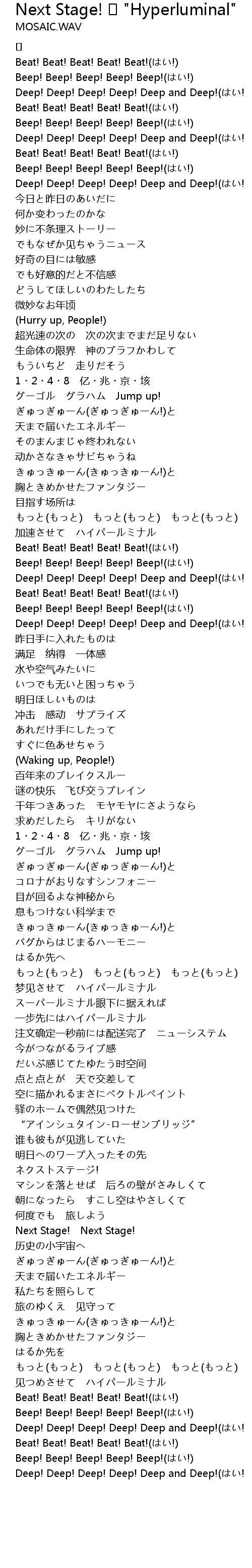 | Song | Next Stage! ⇒ "Hyperluminal" |