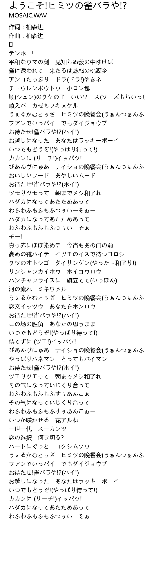 | Song | ようこそ!ヒミツの雀バラや!? |