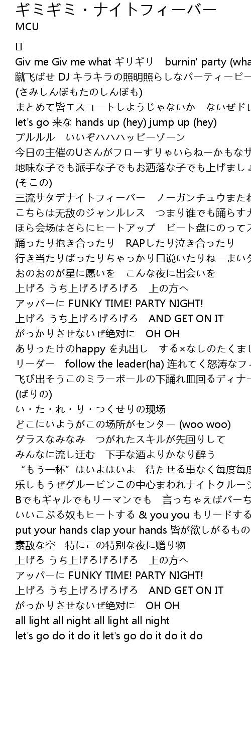 | Giv me Giv me what ギリギリ burnin' party (what?) | |