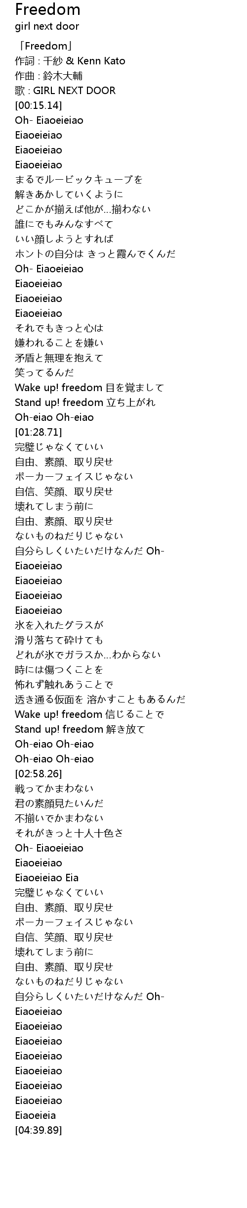 | [00:01.14] | 「Freedom」 |