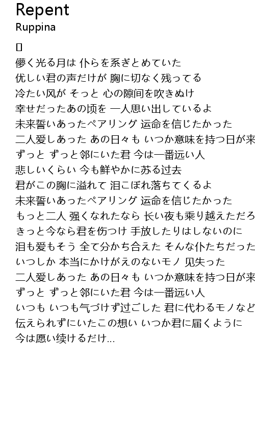 | 二人爱しあった あの日々も いつか意味を持つ日が来るの? | |