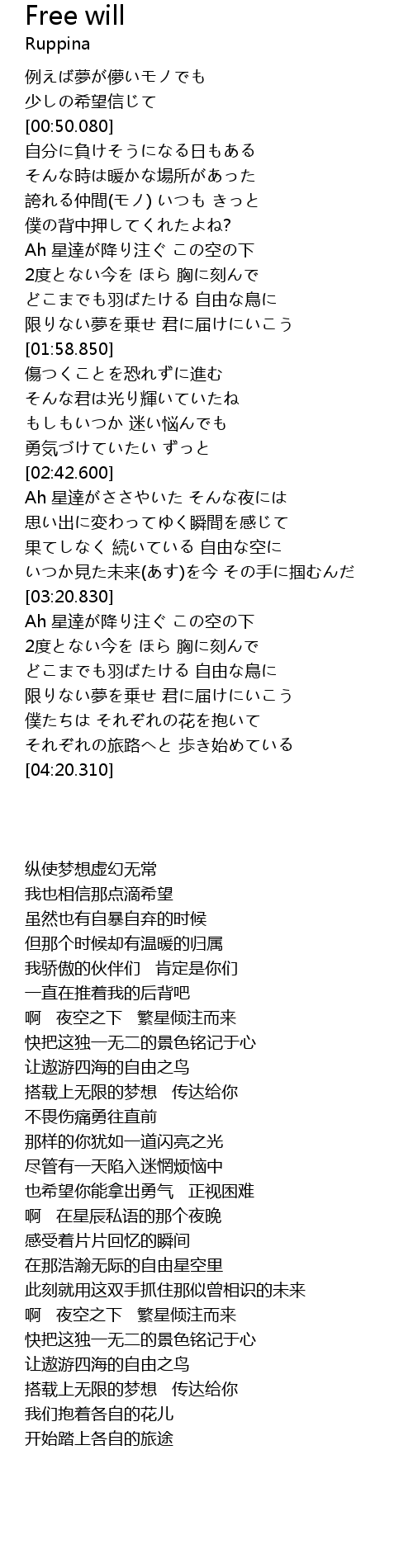 | [03:48.210] | どこまでも羽ばたける 自由な鳥に |