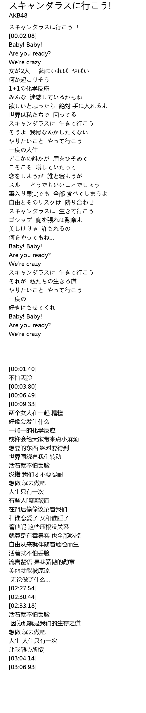 | [00:01.40] | スキャンダラスに行こう ! |