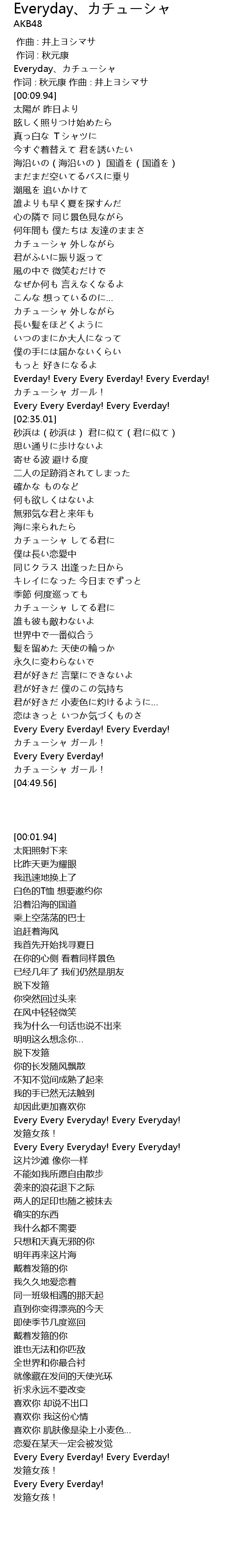 | [00:01.94] | Everyday、カチューシャ |