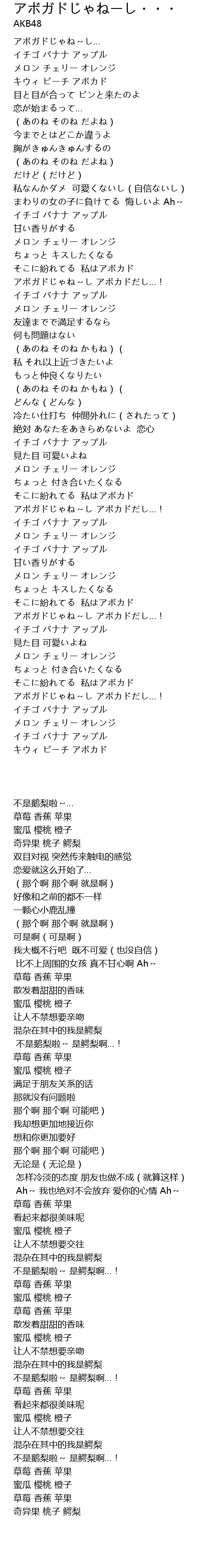| [01:13.17] | アボガドじゃね~し アボカドだし…! |