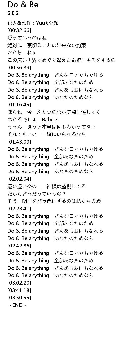 | [02:43.32] | Do & Be anything どんなことでもでける |